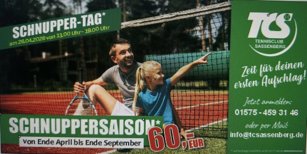 Anmeldung unter 01575/4593146 oder info@tcsassenberg.de